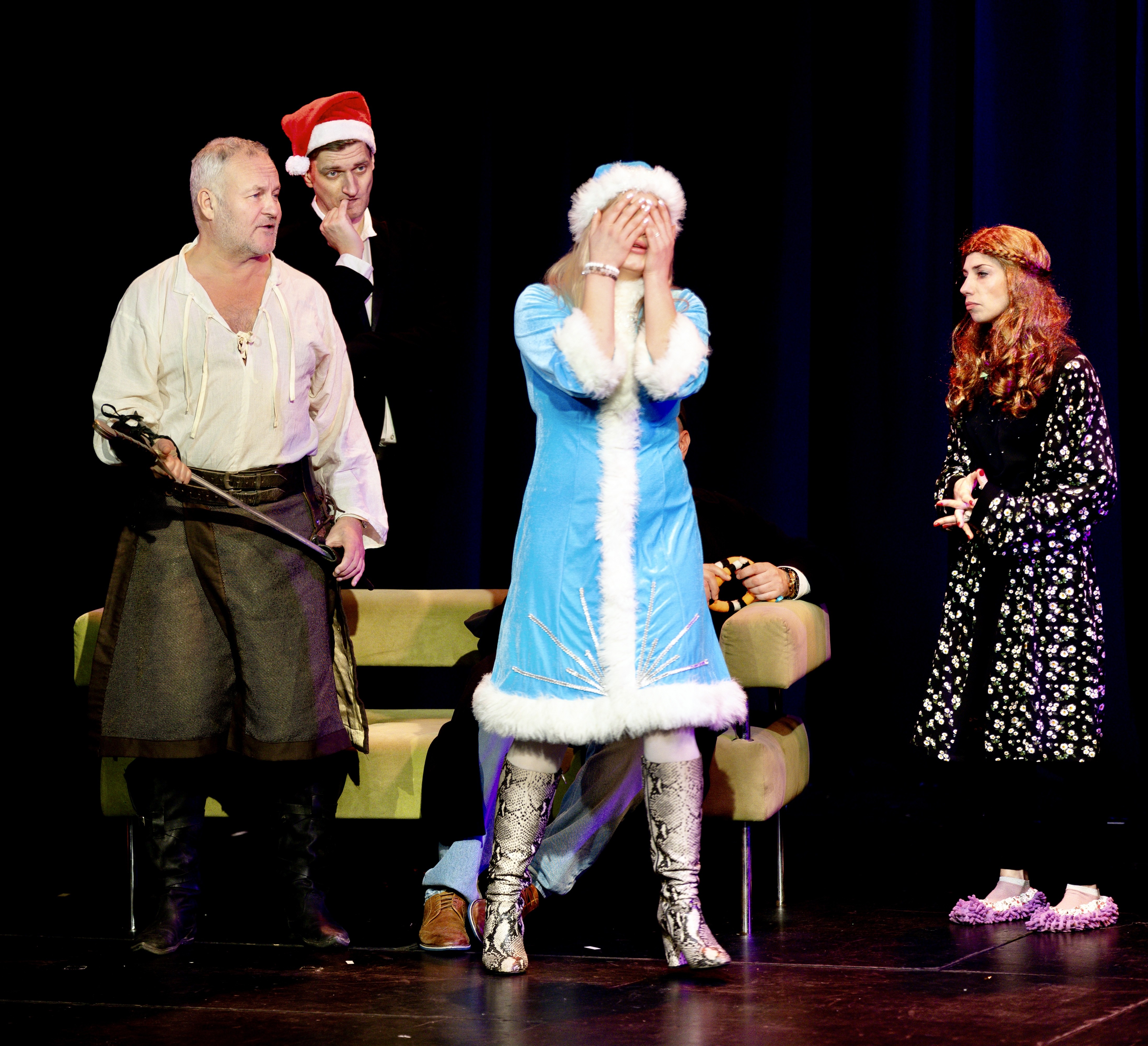 Вася Голованов был явным лидером, и это смотрелось как никогда органично, ведь он директор фирмы. Впрочем, не помню такого спектакля, чтобы Вася смотрелся не органично. Кроме разве что “10 минут до конца света”. Прости, Вася, но твоей роли пророка я не поверила.