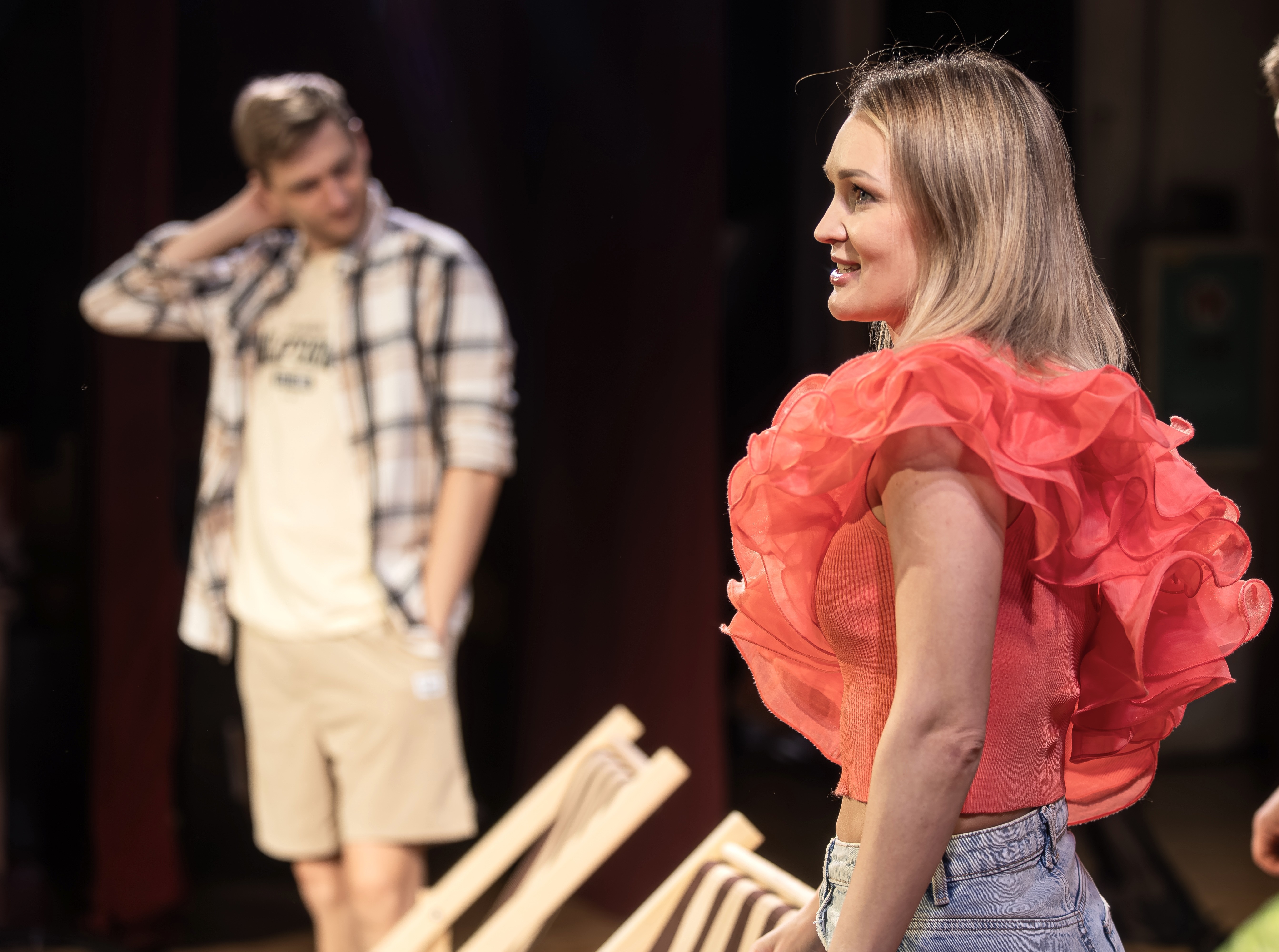Кольнуло в глаза некоторые технические несовершенства - например - Люся ломает ветку в своей сцене, а в следующей сцене (когда действие переноситься в другое место) - эта палка остается лежать и тем самым нарушает чуткую грань веры зрителя (то есть меня). В таком случае ветку стоит забрать с собой в ЗТМе, а нам (то есть зрителям) останется только хлопать в ладоши.