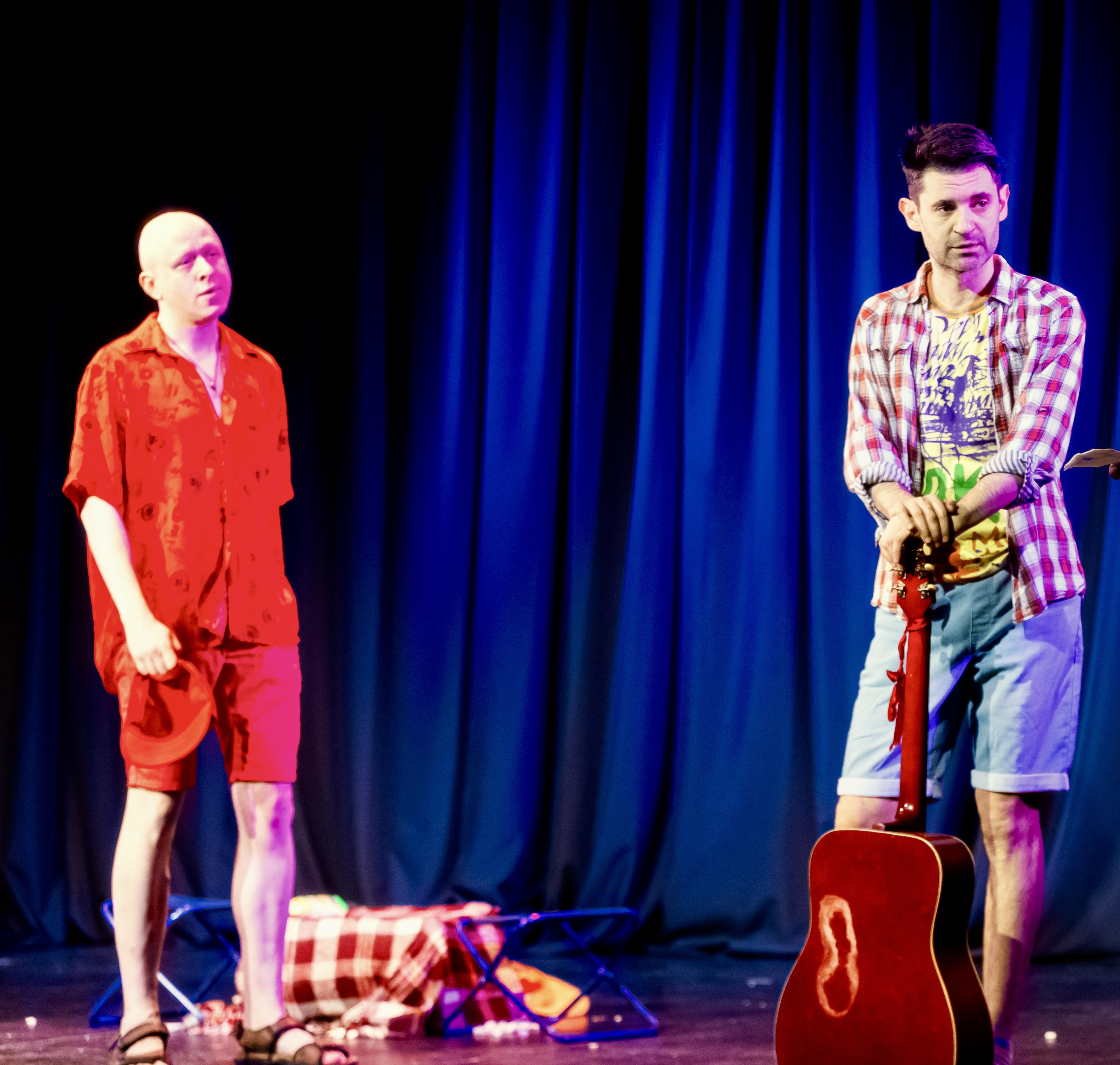 чудом попала на спектакль, сначала долго суетилась, копалась в сумке, отвлекалась на рядом сидящих зрителей, но когда начался спектакль... ребята умеют создать атмосферу. атмосферу дружбы, товарищества, неравнодушия. практически полностью создается ощущения что вот там, возле костра, на пикнике, сидишь и ты, наблюдаешь за происходящим, мажешь "off"-ом укус комара.